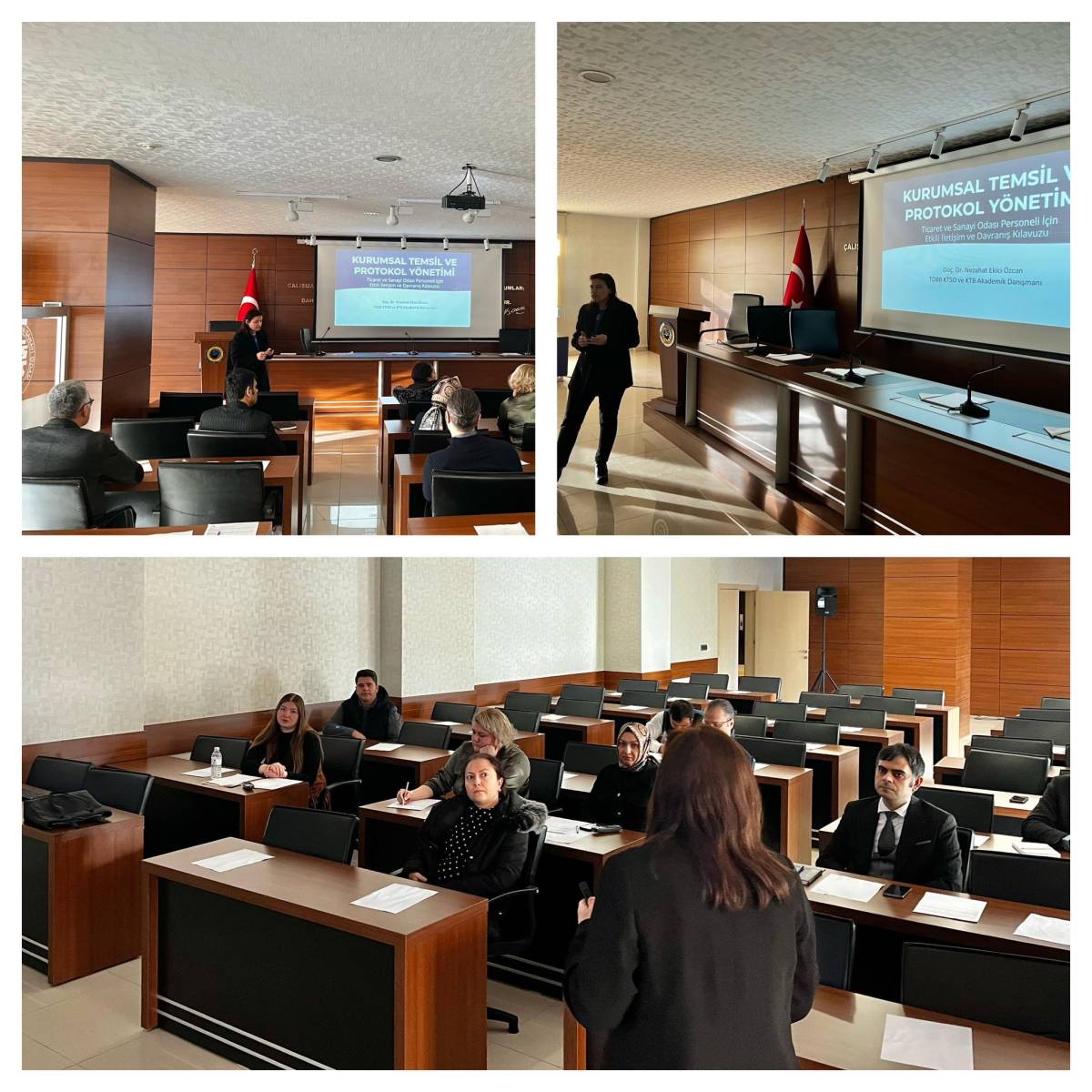 Karaman Ticaret ve Sanayi Odası (KTSO) personeline yönelik olarak, kurumsal temsil yetkinliğinin artırılması amacıyla “Protokol Kuralları” konulu eğitim programı düzenlendi.