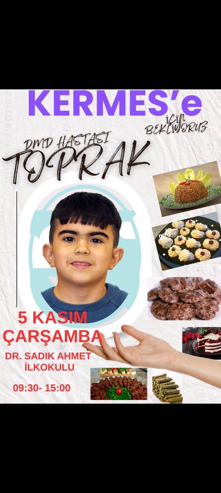 Karamanlı 8 yaşındaki DMD kas hastası Toprak Doğan için anlamlı bir dayanışma etkinliği düzenleniyor. “Toprak İçin Umut Ol” sloganıyla gerçekleştirilecek kermes, 5 Kasım Çarşamba günü saat 09.30–15.00 arasında Karaman Dr. Sadık Ahmet İlkokulu’nda yapılacak. Etkinlikten elde edilecek tüm gelir, Toprak’ın tedavi sürecine destek olmak amacıyla bağışlanacak.