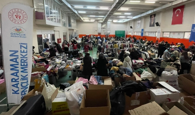 Öte yandan deprem bölgesinden Karaman’a gelen depremzedelerin giyim ihtiyaçlarının karşılanması için Karaman Gençlik Merkezindeki kapalı spor salonunda valiliğinin koordinatörlüğünde hayır çarşısı kuruldu. Depremzedeler kendileri için tasnif edilen alanlardan ihtiyaç duydukları kıyafetleri temin edebiliyor.