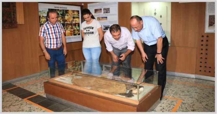 Kılıç, Taşkale köyü yakınlarındaki eski yerleşim merkezi Manazan Mağaraları’ndan getirilen genç kız cesedinin de müzede sergilendiğini aktararak şöyle devam etti: