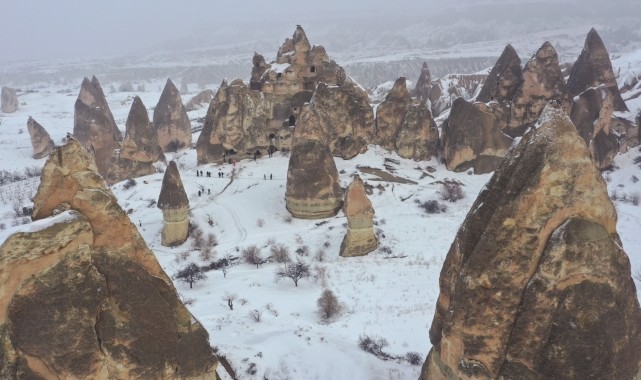 İlkbahar, yaz ve sonbaharda farklı renklerle güzel görüntü sunan Kapadokya, konuklarını kışın da beyazlar içinde ağırlıyor.