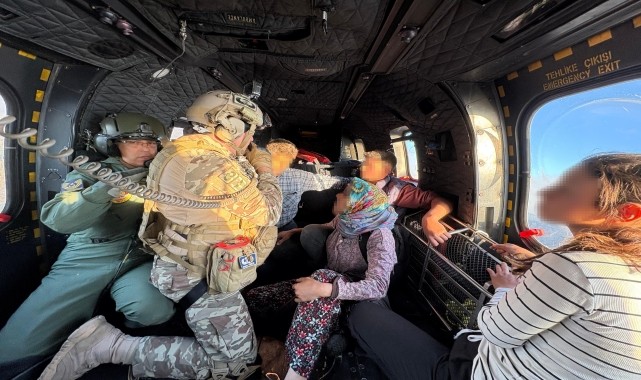 Hava Kuvvetleri Komutanlığı personeli, İzmir'in Ödemiş ilçesi Tosunlar köyünde çıkan orman yangınında mahsur kalan 4 kişilik aileyi helikopterle kurtardı.