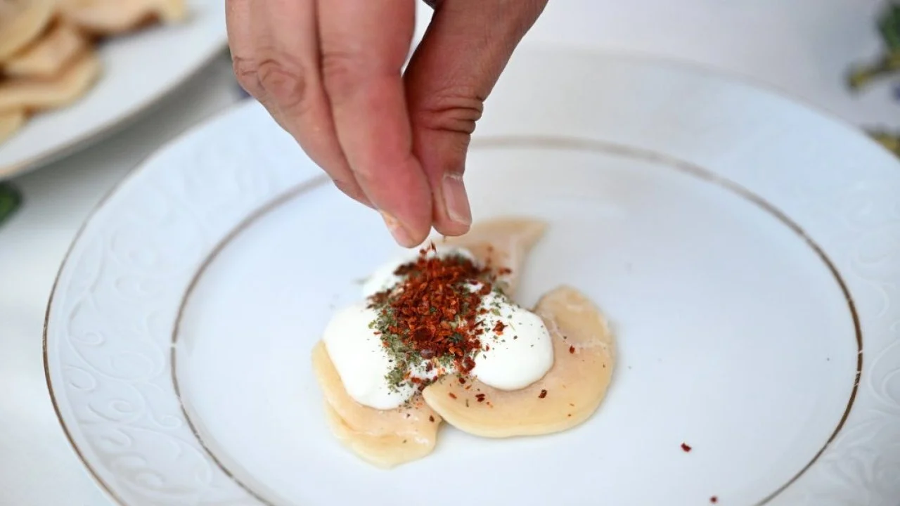 - Hingellerin üzerine tavada kaynatılan tereyağı dökülür, isteğe göre sarımsaklı yoğurt, pul biber ve nane de eklenerek servis edilir.