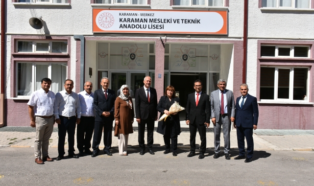 Karaman’da mesleki ve teknik eğitim alanında yürütülen çalışmaları yerinde incelemek üzere MEB Meslekî ve Teknik Eğitim Genel Müdürü Nazan Şener, İl Millî Eğitim Müdürü Mehmet Çalışkan ve beraberindeki heyetle birlikte mesleki ve teknik eğitim verilen okulları ziyaret ederek öğretmenlerle bir araya geldi.