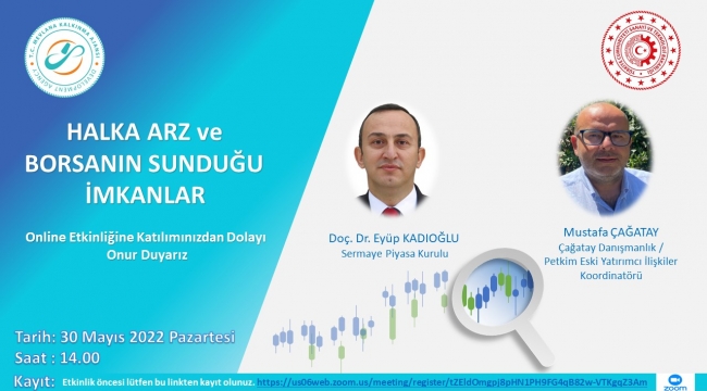 Mevlana Kalkınma Ajansı Karaman Yatırım Destek Ofisi koordinatörlüğünde 30 Mayıs 2022 Pazartesi günü saat 14.00’de online olarak Halka Arz ve Borsanın Sunduğu İmkanlar konulu bir webinar gerçekleştirilecektir.
