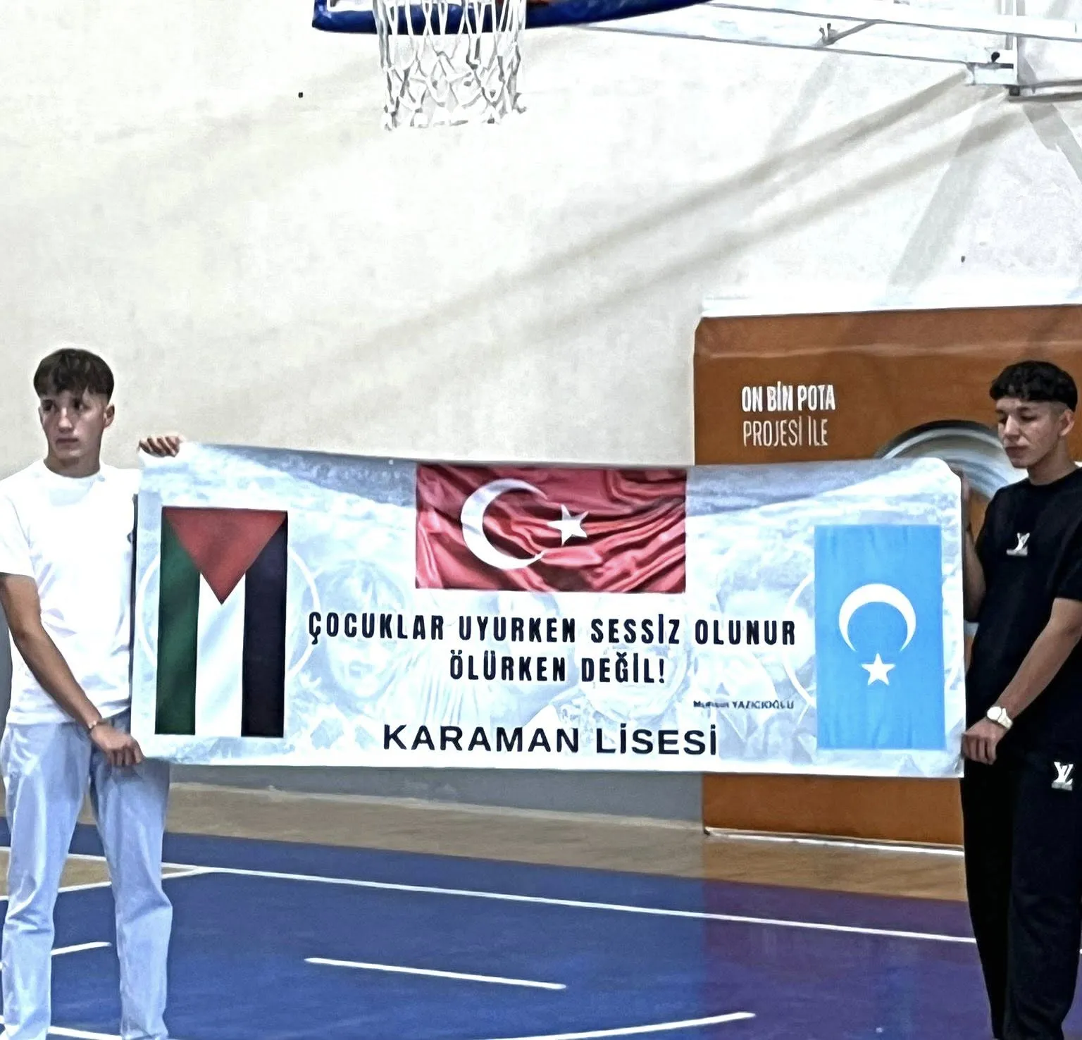 Törenin en dikkat çeken anlarından biri, öğrencilerin "Çocuklar uyurken sessiz olunur, ölürken değil" sloganıyla açtığı Filistinli çocuklar pankartı oldu. Bu anlamlı pankart davetlilerden büyük alkış aldı. Mezun öğrenciler, keplerini de Filistinli çocuklar için fırlatarak farkındalık mesajı verdi.