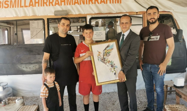 Liselere giriş sınavında Kazımkarabekir ilçesinde birinci olan Hüseyin Yakıcı ve ailesini Milli Eğitim Müdürü Mustafa Eryiğit evine giderek tebrik etti.