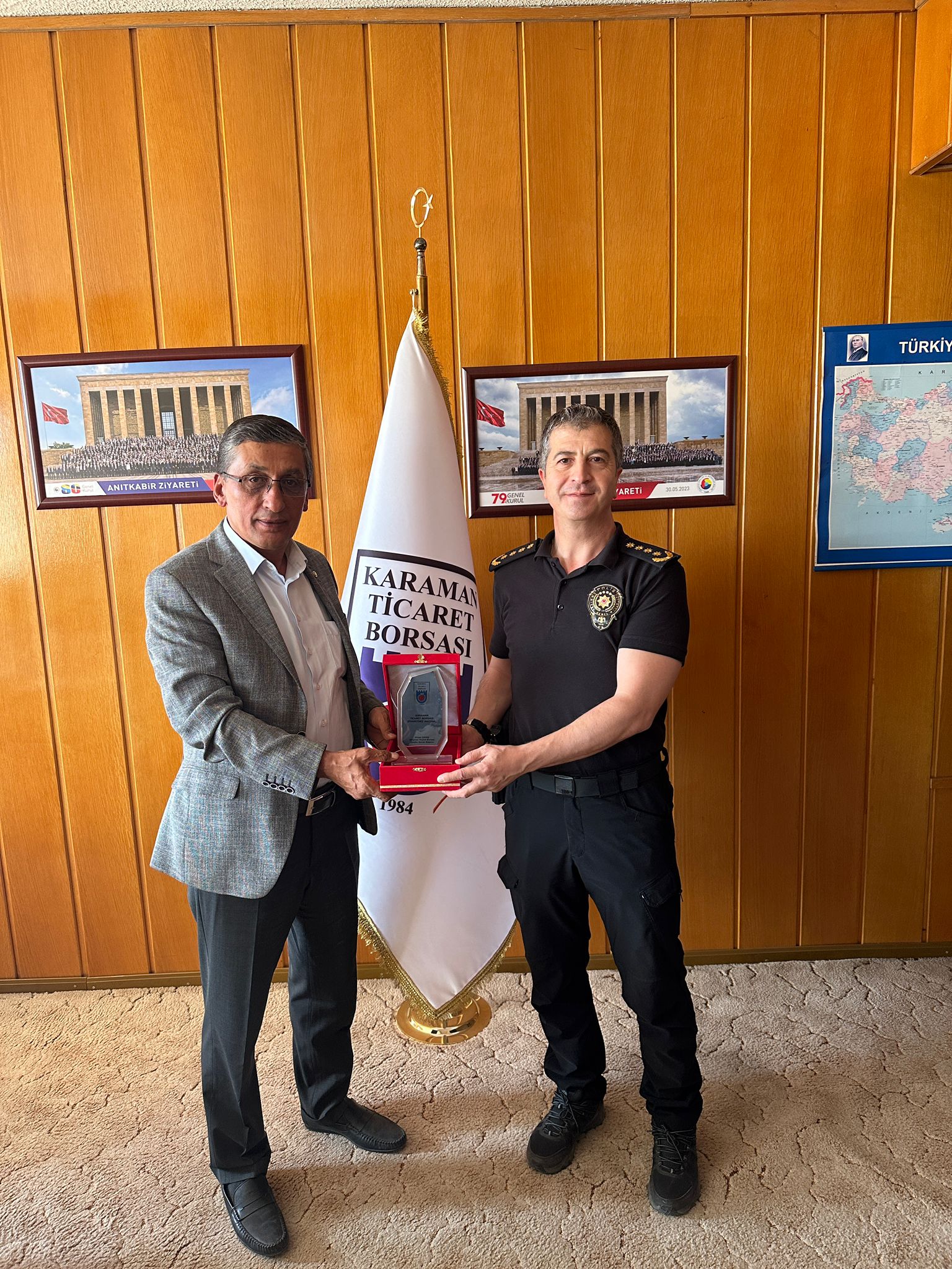 Karaman İl Emniyet Müdürlüğü görevine atanan Mehmet Turhan, Karaman Ticaret Borsası Yönetim Kurulu Başkanı Ekrem Çavaş, Yönetim Kurulu Başkan Yardımcıları Ali Özkor, Mehmet Kaya, Yönetim Kurulu Sayman üye Hasan Ali Topbaş, Meclis üyeleri Galip Karakaş, Bilal Ünüvar ve Genel Sekreter H.Fatih Fındık’a iade-i ziyarette bulundu.