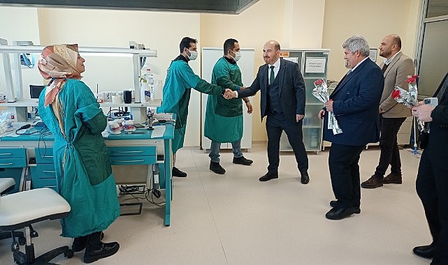 İl Sağlık Müdürü Uzm. Dr. Mehmet Serkan Yurdakul’a, diş hekimlerini ziyareti sırasında, Kamu Hastane Hizmetleri Başkanı Dr. Öğr. Üyesi Mehmet Emre Ay, Halk Sağlığı Hizmetleri Başkanı Dr. Aykut Emre Yıldırım, Sağlık Hizmetleri Başkanı Dr. Ahmet Özçelik ile Ağız ve Diş Sağlığı Merkezi Başhekimi Dt. Yusuf Gündoğdu ve Hastane Müdürü Musa Duru eşlik etti.