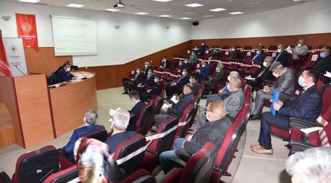 İl Sağlık Müdürü Dr. Adnan Kurşun’un koronavirüs salgınıyla ilgili muhtarlara bilgilendirmelerde bulunmasıyla devam eden toplantıda daha sonra Halk Sağlığı Başkan Yarımcısı Dr. İnanç İkbal Çolakoğlu tarafından 442 Sayılı Köy Kanununa göre muhtarlıkların ve ihtiyar heyetlerinin Çevre Sağlığıyla ilgili görevleri ve sorumlulukları hakkında bilgilendirme sunumu yapıldı.