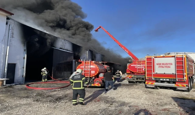 Niğde OSB 3. Cadde'de bulunan plastik çerçeve üretilen bir fabrikada, henüz belirlenemeyen nedenle yangın çıktı.