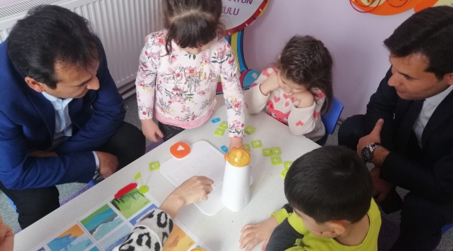 İl Millî Eğitim Müdürü Mehmet Çalışkan’a eğitim atölyesinde yapılan faaliyetlere ilişkin bilgiler veren Gevher Hatun Anaokulu Müdürü Merve Uzun matatalab ile robotik kodlama kursunun ikinci dönem itibariyle başladığını ifade ederek kursun tüm yaş grubundaki öğrencileri kapsadığını belirtti.