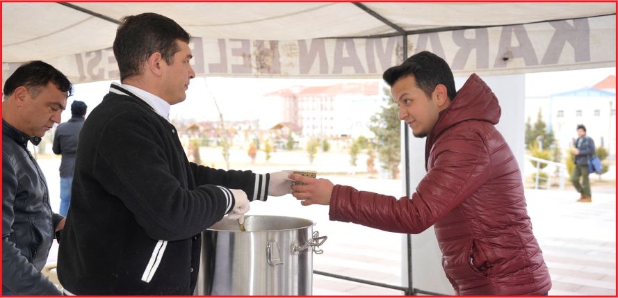 Karaman Belediyesi tarafından hazırlatılan çorbalar, Karamanoğlu Mehmetbey Üniversitesi’nde üniversiteli gençlere ikram edildi. Bu ay final haftası iyle yoğun bir tempoda çalışan öğrenciler, Karaman Belediyesi ve Kent Konseyi tarafından verilen çorba ikramı için emeği geçenlere teşekkür ettiler.