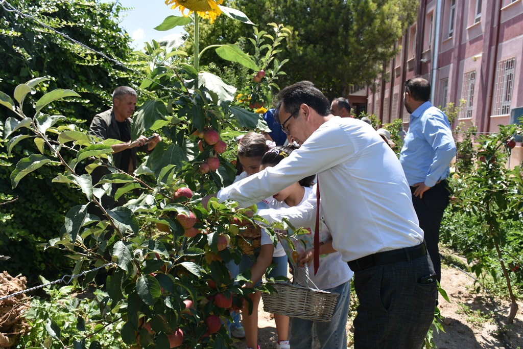 Okul Müdürü Halil İbrahim Gürsoy’un koordinasyonunda, Sınıf Öğretmeni Bahadır Varışlı’nın titizlikle hayata geçirdiği "Her Sınıf İçin Bir Elma Fidanı" projesi kapsamında ekilen 20 elma fidanı, meyve vermeye başlamıştı. Amacı, öğrencilere doğa sevgisini aşılamak olan bu projede, öğrenciler yıl boyunca fidanları büyütmek için emek verdi.