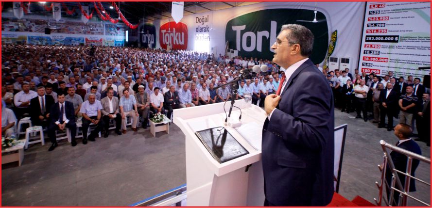 “2015-2016 yılında Konya Şeker, yaklaşık 213 milyon lira nakdi avans ödemesi yaptı. Hepiniz biliyorsunuz paranın bir maliyeti var. Bu miktarda bir parayı üretici Ziraat Bankasından kredi olarak kullansaydı, bu paraya toplamda ödeyeceği bayraklı yaklaşık 26 milyon lira olacaktı. Yani pancar parasını alıp bankaya borcu kapatmaya gittiğinizde, fazladan 26 milyon lirayı Konyalı üretici ödeyecekti. Ceptekini korumak yeter mi? O da yetmez. 2000’li yılların başında bu kurum sizin sadece şeker pancarınızı alabiliyordu. Bugün sizin ürettiğiniz patatesi, ayçiçeğini, kanolayı, mısırı, arpayı, sütü ve besiyi de alabiliyor. 2001 yılında size ö ğimiz toplam ürün bedeli 72,6 milyon $’dı. Rakamı dolar olarak vermemin sebebi kıyaslama imkânı vermesi açısındandır. 2015-2016 kampanya döneminde şeker pancarı için yaptığımız ödeme 220 milyon doların üzerinde ve patates, ayçiçeği, arpa, mısır, kanola, süt ve besi dâhil edildiğinde 2015- 2016 yılında üreticiye ö ğimiz tarımsal girdi bedeli toplamda 450 milyon doların üzerinde. Yani dolar bazında Konya Şeker, üreticinin ekonomisini yaklaşık 6 kat büyütmüştür. Bu rakamlar daha da büyüyecek. Hem işletmeye aldığımız tesislerimiz büyüyecek ve sizin ürettiklerinizden daha çok almamıza imkân verecek hem de yeni üretime başlayacak tesislerimizle büyüyecek. Mesela pancarın, mısırın, arpanın, patatesin, ayçiçeğinin, süt ve besinin yanına bu sene buğday ve üzüm de eklenecek. Özellikle buğdayda önümüzdeki yıldan itibaren tıpkı mısırda ğu gibi fiyat regülasyonunda Konya Şeker önemli bir rol üstlenmeye başlayacak. Bu sene deneme üretimlerine başlayacak Bulgur Fabrikamızla, Un Fabrikamız sizin buğdayınıza hasat ı yapacağı alımla koruma kalkanı oluşturacak. Meyve Suyu Fabrikamızın da devreye girmesiyle Konya Şeker’in eli bağa bahçeye de değecek. Baş başa vermeyince taş yerinden kalkmazmış. Biz Konya’da baş başa verdik, taşı yerinden rdık. Kaldırmakla da kalmadık, taş taş üstüne koya koya kendi derdimize derman üreten işlere imza attık. Rabbimin birliğimize zeval vermemesi, baş başa vererek daha nice taşları rıp çok daha büyük işlerin üstesinden gelmeyi bu salona Yaradan’ın nasip etmesi temennisiyle hepinizi saygıyla selamlıyor, Genel Kurulumuzun hayırlara vesile olmasını diliyorum.”