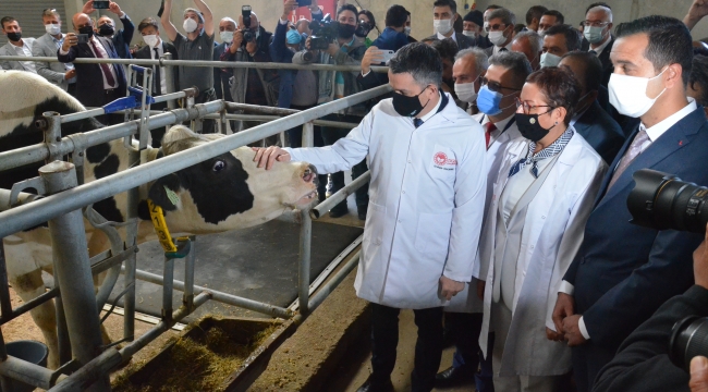 Pakdemirli, “İlk olarak bize bugün ev sahipliği yapan CHS hayvancılık işletmesini ziyaret edeceğiz. CHS Hayvancılık işletmesi IPARD-I kapsamında destekliğimiz süt işletmelerimizden birisidir. İşletmeye yaklaşık 3 Milyon 346 Bin Lira yatırım yapılmış olup, biz bu yatırım tutarının 2 Milyon 65 Bin Liralık kısmını hibe desteği olarak yatırımcıya verdik. Üretenin her zaman yanında olduğumuzu gösteren güzel örneklerden bir tanesi olan CHS Hayvancılık işletmesini, bir yenilikle daha buluşturuyoruz. Şimdi Hayvan Takip Sistemi teknolojisi uyguladığımız CHS hayvancılık işletmesindeki, hayvanları sistem üzerinden canlı olarak izleyelim. İşletmemizdeki bir hayvanı seçelim ve anlık durumuna bakalım. Evet, şu anda seçtiğimiz hayvanın işletmedeki diğer hayvanlardan farklı bir hareketliliği ya da yem yemesinde farklılık olup olmadığını buradan görebiliyoruz. Bulunduğumuz işletmede tören alanımızdaki ineğimizin kulağında elektronik hayvan takip cihazını görebiliriz. Şimdi de Ankara Lalahan'daki Uluslararası Hayvancılık Araştırma Enstitümüzdeki hayvanların durumuna bakalım! Sistemden işletmemizdeki hayvanların detaylarına baktığımızda Kızgın olan hayvanların uyarısını buradan görebiliyoruz. Bu sayede İşletme sahibinin ve veteriner hekimin cep telefonuna bildirim yaparak hayvanın zamanında tohumlanmasını sağlayarak döl verimi kayıplarının azaltılmasına katkı sunmuş oluyoruz. Şimdi de Erzurum Doğu Anadolu Tarımsal Araştırma Enstitüsü işletmesindeki hayvanların durumlarına bakmak istiyorum. Buradaki hayvanların yine canlı olarak izleme ve geviş getirme, yem yeme, kızgınlık gibi durumlarını görme şansımız bulunmakta. Aynı şekilde işletmede hastalık çıktığı varsayımı ile elektronik karantina uygulamasını test ediyoruz. Bu işletmede yaptığımız kontrol ile bir hayvanın işletmenin sınırları dışına çıktığı uyarısının olduğunu görmekteyiz. Uyarının detaylarına baktığımızda işletmenin bulunduğu bölgenin karantina Bölgesi olduğu ve hayvanın bu karantina bölgesini terk etiğini tespit edip, derhal müdahale etme imkânımız bulunmaktadır. Sistemin kurulu olduğu bir diğer ilimiz Adana. Buradaki Araştırma Enstitümüzdeki hayvanların durumlarını incelediğimizde burada yürütülen Anadolu Alacası Projesi kapsamında embriyo üretmek amacıyla senkronize edilen hayvanlardan birinin kızgınlığa geldiği bilgisine ulaşıyoruz. Bilgi anında İşletme Sorumlu Veteriner Hekimine SMS yoluyla iletilerek, tohumlamasının zamanında yapılmasını sağlamış oluyoruz” dedi.