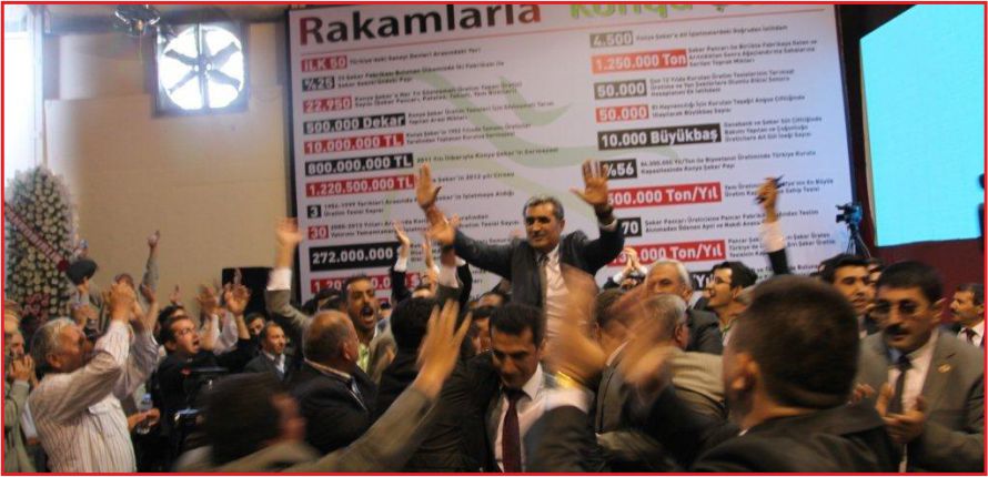 Konya Pancar Ekicileri Kooperatifi’nin 61.Olağan Seçimli Genel Kurulu 13 bine yakın üreticinin katılımı ile büyük bir coşku içerisinde yapıldı. Üreticilerin büyük ilgi gösterdiği genel kurulda üreticilerin tercihi yine Recep Konuk . Sabahın erken saatlerinde bölgelerinden gelerek Konya Şeker’de toplanan üreticilerin destek verdiği Recep Konuk, genel kurula katılan üyelerin geçerli oylarının 9 bin 138’ini alırken, Mevlüt Mülayim’in listesi ise 3 bin 120 oy alabildi.