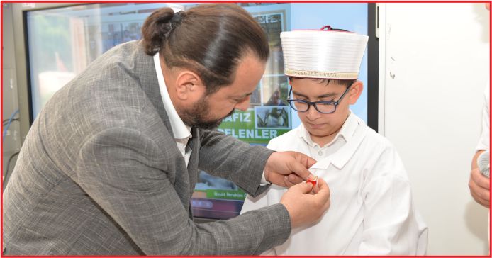 Program, öğretmeni Ramazan Doğan tarafından Hafız İsmet Çelik'e cübbe ve sarık giydirilmesiyle devam etti. Ardından genç hafız Kuran tilaveti gerçekleştirdi.