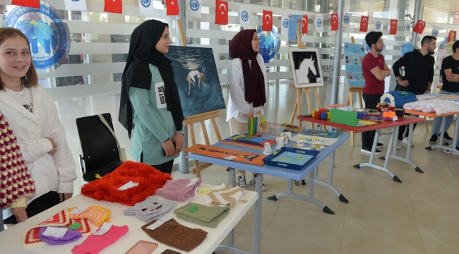 Sağlık Hizmetleri Meslek Yüksekokulu Öğr. Gör. Esra Nur Özcan ve Öğr. Gör. Melek Havva Kılçık ile Öğr. Gör. Nergiz Eryılmaz danışmanlığında hazırlanan sergide İş ve Uğraş Terapisi Programı, Fizyoterapi Programı, Ameliyathane Hizmetleri Programı, Engelli Bakım ve Rehabilitasyon Programında okuyan 300'e yakın öğrencinin ders kapsamında yapmış oldukları çalışmalar sergilendi.