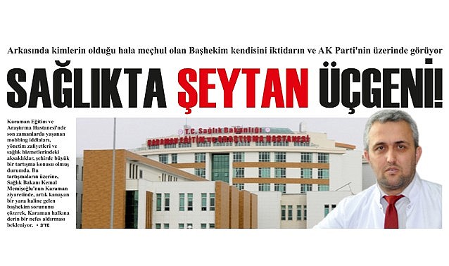 Ak Parti il başkanı Murat Öztürk, bu şehirde Cumhurbaşkanı ve Ak Parti Genel Başkanı Recep Tayyip Erdoğan’ın temsilcisi. Ne var ki, istifasının ardından iki saat içerisinde hem de milletvekilleri ile teşkilatların istememesi rağmen başhekim olarak atamasını yaptıran Başhekim Taşçı tabiri caizse kimseyi kazımıyor. Siyasiler ile restleşiyorken, arkasının çok güçlü olduğunu çevresine sürekli olarak anlattığı iddia edilirken, Sağlık Bakanlığı’nın Karaman’a yaptıracağı ve ihalesi tamamlanan ek hastane binasının bile kendisinin hatırına yapıldığını, bakanlıkta o kadar güçlü olduğunu açık açık beyan ettiği iddiaları gerçekten mide bulandırıyor.