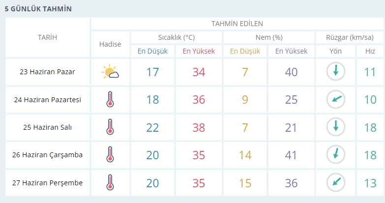 Meteoroloji Genel Müdürlüğü verilerine göre Karaman’ın 5 günlük tahmini hava durum raporu: