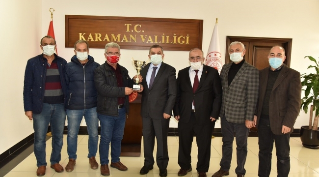 Vali Mehmet Alpaslan Işık, Antalya’da düzenlenen masterler turnuvasında şampiyon olan Karaman 70 Masterler futbol takımını makamında kabul etti.