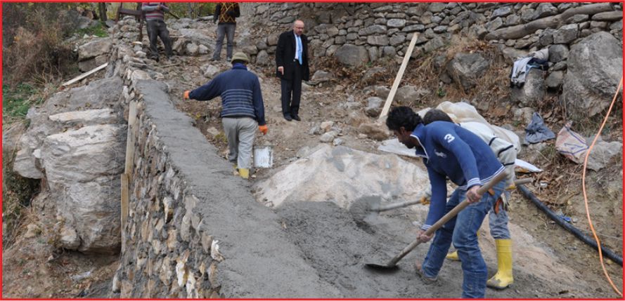 Burada çalışanlarla bir süre sohbet eden ve kolaylıklar dileyen Belediye Başkan Hayri Samur, “Yolun altı heyelan ve toprak kayması sonucu tehlike arz ettiği için, istinat duvarı çalışmalarına başladı. Hiçbir vatandaşımızın malına ve canına zarar gelmemesi için üzerimize düşen her türlü çalışmayı yapmaktayız, yapmaya ’da devam edeceğiz ” .