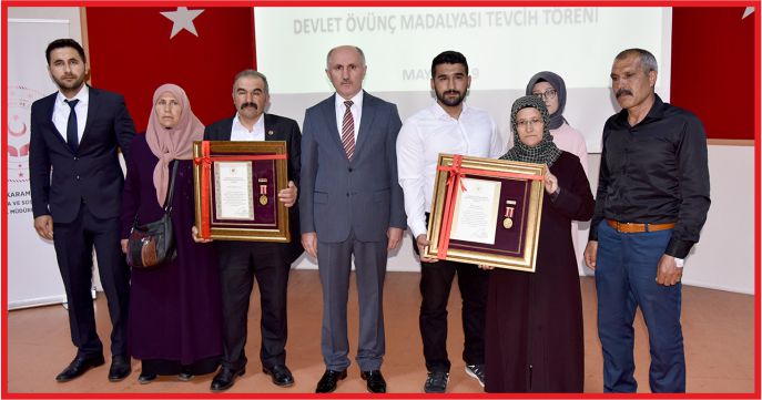 Konuşmanın ardından Vali Fahri Meral, Cumhurbaşkanlığı tarafından tevcih edilen Devlet Övünç Madalyalarını şehitlerimizin yakınlarına takdim etti.