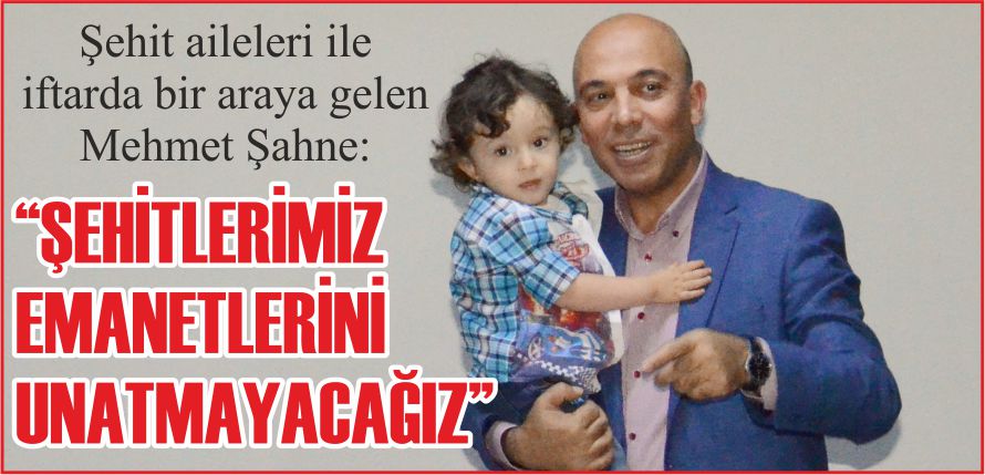 İl Emniyet Müdürü Mehmet Şahne tarafından, Polis Evi Şube Müdürlüğümüzde Vali Murat Koca ve İl Jandarma Alay Komutanı J. Kd. Albay Mustafa Akış ve eşlerinin katılımları ile Emniyet Teşkilatında görevli iken Şehit personellerimizin yakınlarına ve Emniyet Müdürlüğümüzde halen aktif olarak görev yapan Şehit Çocuğu personellerimize iftar yemeği verilmiştir.