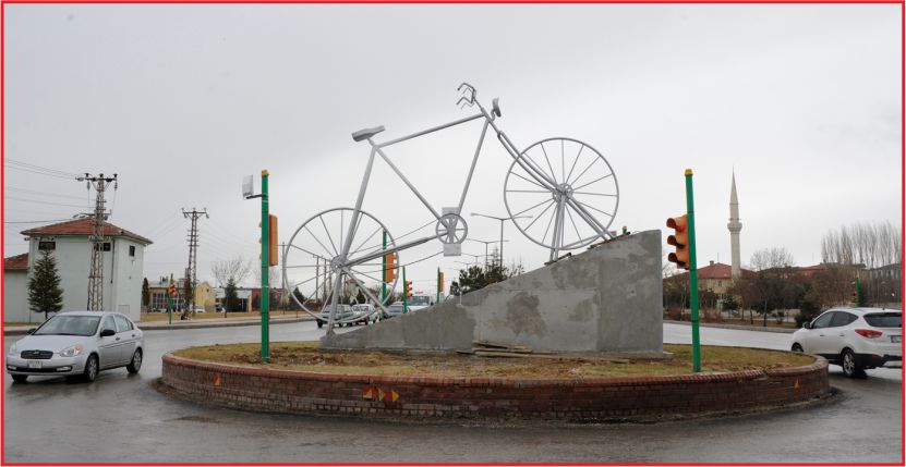 “Şimdi en çok merek edilen soruya cevap vereyim. Neden? Sanayi kavşağına bisiklet heykeli. Burası Sanayi, tamirciler var. Ayrıca bu bölgede Karaman’da ilk defa bisiklet yolu uygulaması yapacağız. Üniversite ile şehrin bağlantısını bisiklet yolu ile sağlayacağız. Onun için Sanayi ile Üniversite arasına, Sanayi kavşağına o bisiklet simgesini koyduk. Bisiklet yolu ile alakalı projemiz Bakanlıkça kabul edildi. Yani kampüsten çıkan üniversite öğrencileri çok küçük bir para karşılığı önlerinde bulunan bisiklet istasyonlarından bisikletlerini alacaklar, onlarla kente gelecekler, kentte istedikleri istasyona bisikletleri bırakabilecekler. Böyle bir uygulamanın içinde ğumuz için o bölgeye bir bisiklet heykeli koyduk. Marangozlar ve Mobilyacılar sitesinin bulunduğu yere de yine kütüklerden yapılma mum heykelleri koyduk. Dolayısıyla kısmet olursa her bölgeye kendi özelliğine uygun şehir mobilyaları yapacağız.”