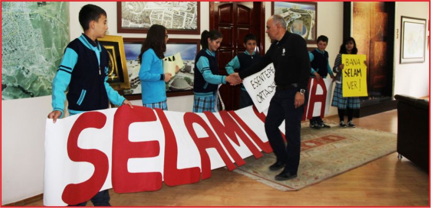 Milli Eğitim Bakanlığının EDEP projesi kapsamında başlattıkları “Selamlaşma” etkinliğini ilk olarak İsmet Paşa Caddesindeki karşılaştıkları vatandaşlarlasürdüren Esentepe Ortaokulu öğrencileri, daha sonra Karaman Belediyesi’ne gelerek Belediye Başkanı Ertuğrul Çalışkan ile selamlaştılar.