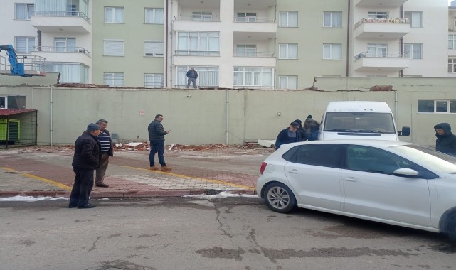 Kızılcalar Mahallesi Necati Kalaycıoğlu Caddesi'nde bir apartmanın duvarı yıkıldı.