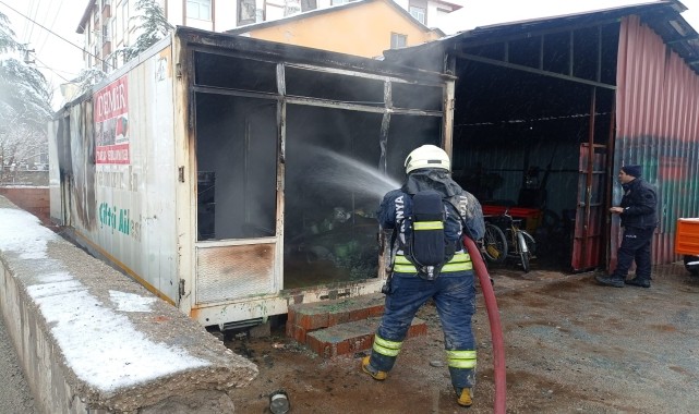 İtfaiye ekiplerinin müdahalesi ile yangın büyümeden söndürülürken iş yerinde hasar meydana geldi.