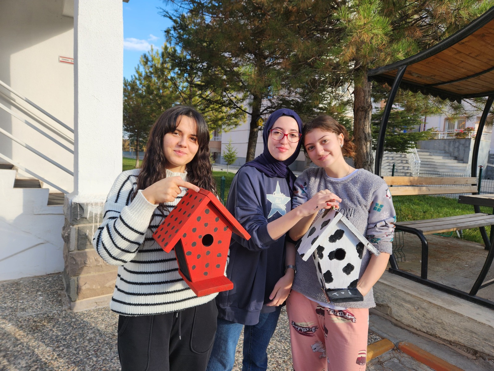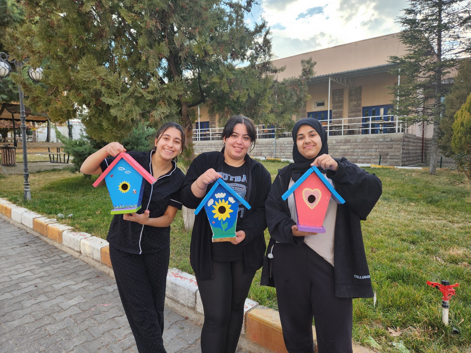 GSB Karaman Kız Yurdunun bahçesinde düzenlenen kuş evi boyama etkinliğinde öğrenciler, kuşlar için birbirinden renkli yuvalar hazırladı. Etkinlik sonunda boyanan kuş evleri, yurt bahçesindeki ağaçlara asılarak minik dostlarımız için sıcak birer yuva haline getirildi.