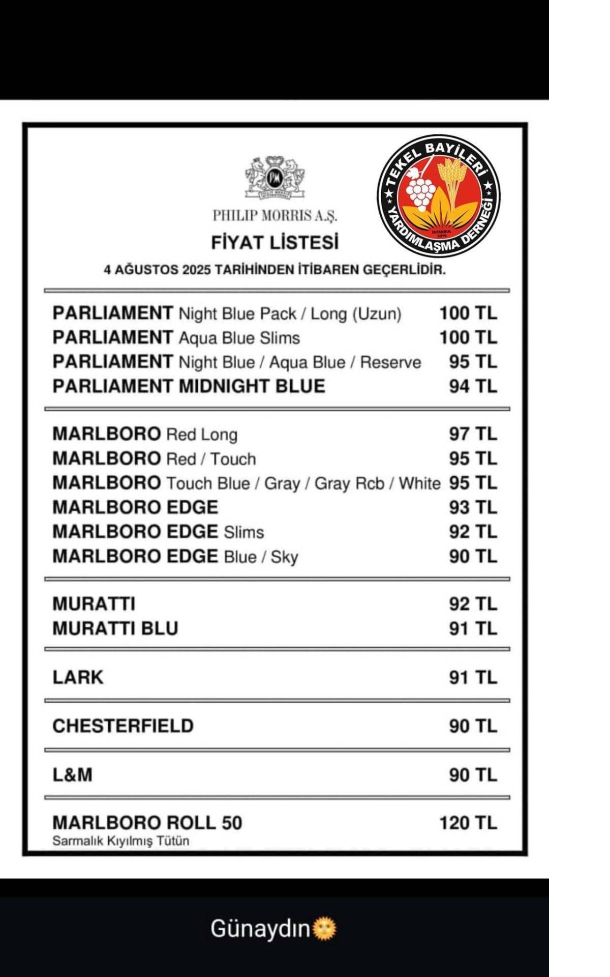 Dündar'ın paylaştığı bilgilere göre, Marlboro ve Parliament gibi markaları içeren Philip Morris ürünlerinin fiyatları güncellendi. Bu son zamla birlikte sigara tiryakilerini yeni bir fiyat artışı karşılamış oldu.