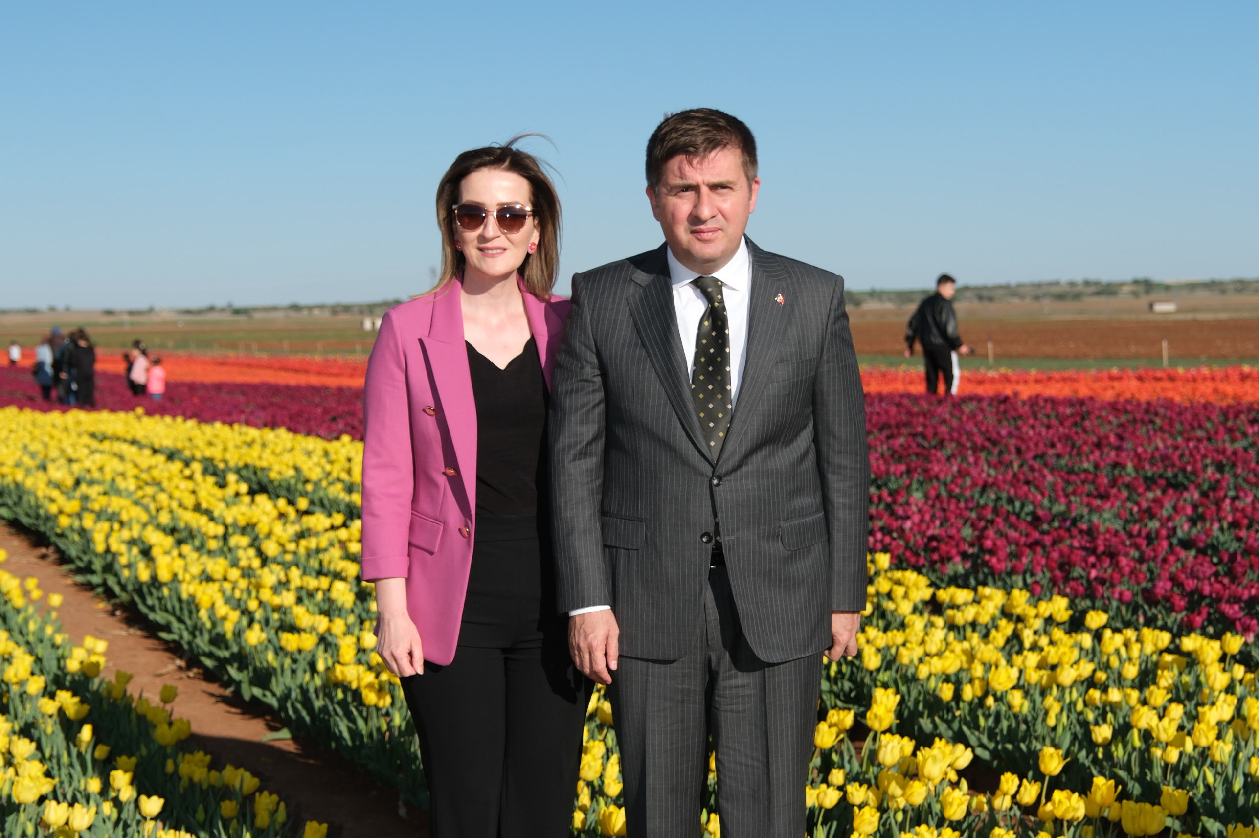 Karaman Valisi H. Engin Sarıibrahim ve eşi Hatice Sarıibrahim Hanımefendi, Kazımkarabekir İlçesi Kızılkuyu köyünde 84 Dekar alanda 8 milyon lale soğanı ile Türkiye’nin en büyük lale bahçesi olan ve üretilen lale soğanları Dünyanın birçok ülkesine ihracat edilen lale bahçesini ziyaret ederek Atlas Lale kurucusu Latif Ateş’ten lale üretimi hakkında bilgi aldı.