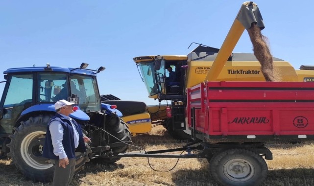 İlçe Müftüsü İsa Yaykın tarafından yapılan duanın ardından, biçerdöverin direksiyonuna geçen Canpolat, ilk buğday hasadını gerçekleştirdi.