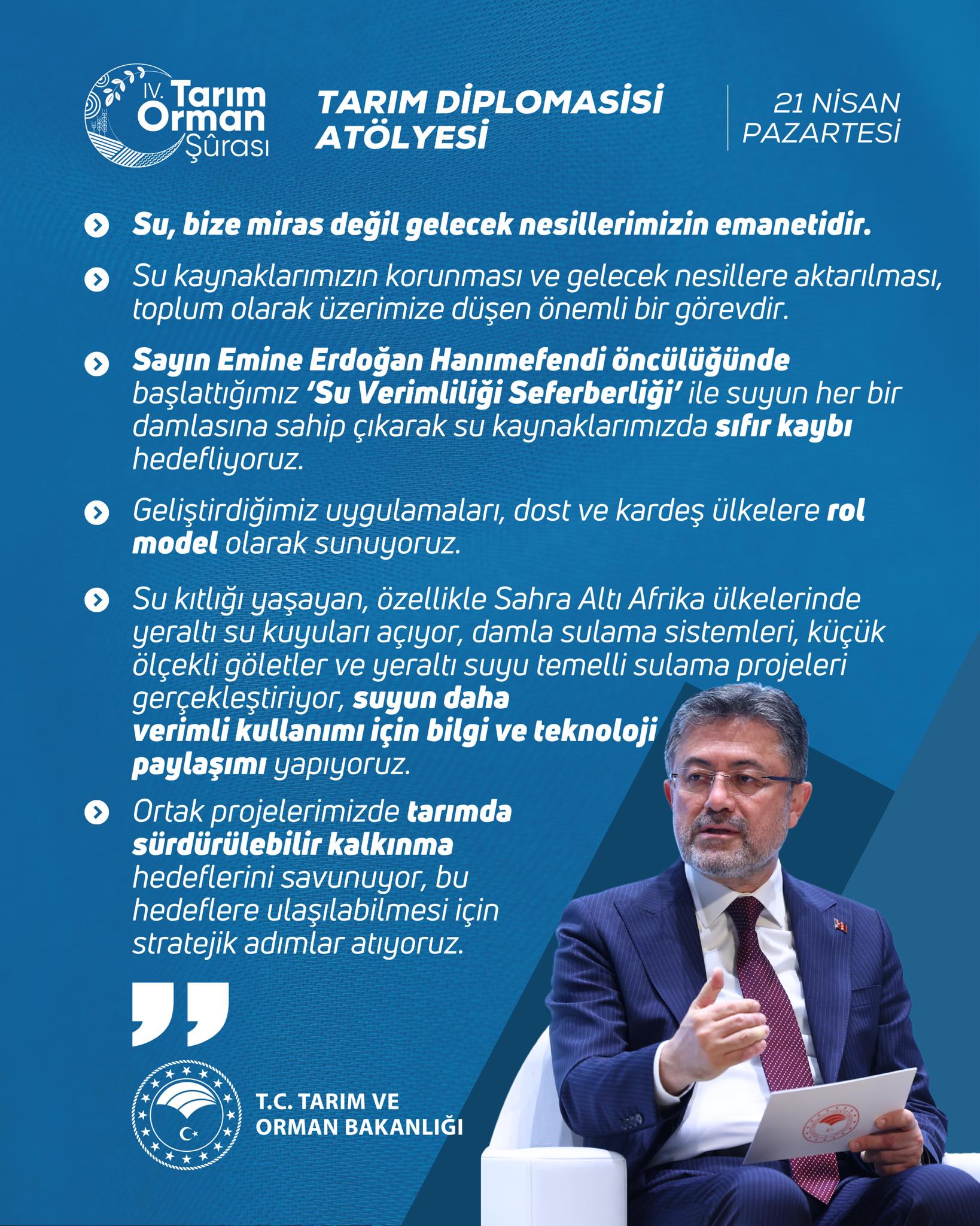 Karaman Tarım ve Orman İl Müdürlüğü'nden yapılan açıklamada, IV. Tarım Orman Şûrası kapsamında düzenlenen Tarım Diplomasisi Atölyesi'nde su kaynaklarının korunmasına yönelik önemli mesajların verildiği belirtildi.