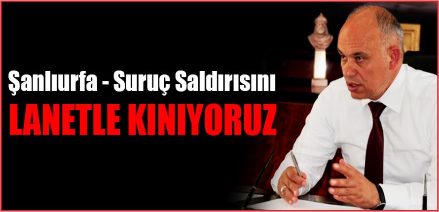 “ Bu sabah saatlerinde Şanlıurfa’nın Suruç ilçesinde vuku bulan bombalı saldırı sonucu ilk belirlemelere göre 28 vatandaşımız vefat etmiş ve 100’e yakın vatandaşımızda yaralanmıştır. Yetkili mercilerin açıklamalarına bakılırsa, İlk bulgulara göre patlamanın kaynağının bir canlı bomba ğu düşünülmektedir. Birlik ve beraberliğimize kast edilen bu tür eylemlere karşı Türkiye Cumhuriyeti vatandaşları olarak birbirimize daha da kenetlenmeliyiz. Dili, dini, rengi, ırkı, çeşidi, şekli yani mahiyeti ne olursa olsun, her türlü terör eylemini lanetle kınıyoruz. Bu elim olay neticesinde vefat eden vatandaşlarımıza Allah’tan Rahmet, yakınlarına sabırlar diliyorum. Yaralı vatandaşlarımızın da sağlıklarına kavuşmalarını temenni ediyorum”