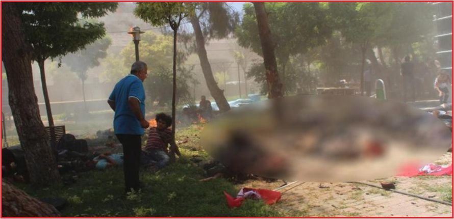 Görgü tanığı Çelik'in ifadesine göre bomba patladığı sırada grup bir basın açıklaması yaparak hangi koşullarda Kobani'ye geçeceklerini anlatıyordu. Çelik "Tam foto çekmeye çalışırken çok şiddetli bir patlama . Cesetler her yere yayıldı. Cesetlerin altında k o derece şiddetliydi" .