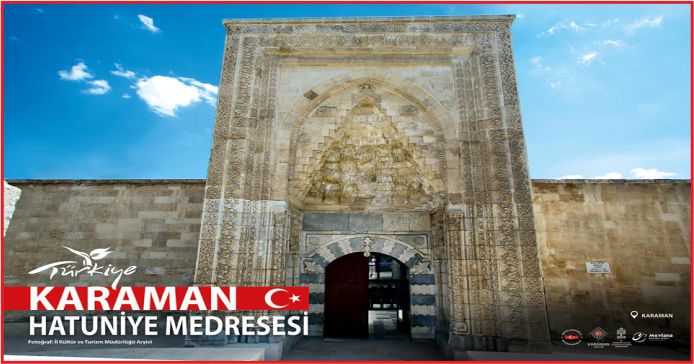 Karaman İl Merkezinde yer alan Hatuniye Medresesi, Osmanlı Sultanı Murat Hüdavendigar'ın kızı, Karamanoğlu Alaaddin Bey'in karısı Nefise Sultan tarafından 1382 yılında yaptırılmıştır. Medrese açık avlulu, tek eyvan(üç tarafı kapalı, bir tarafı açık avluya bakan kubbeli yapı)lıdır. Medresenin avlusu revak(sundurma)larla çevrili olup doğu ve batı cephelerinde öğrenci hücreleri yer alır. Medresede yapı malzemesi olarak kesme taş kullanılmıştır. Yapıda süsleme taçkapı, eyvan kemeri, köşe odaların girişlerinde yoğunluk gösterir. Süslemelerde geometrik motifler yanında, bitki motifleri, rumi (Anadolu Selçuklularının üslûplaştırdıkları filiz, yaprak ve hayvan örgelerinden meydana gelmiş dolaşık süsleme) ve palmetler (İlkçağ sanatından beri kullanılan bir bezeme motifi. Bir gövdenin iki tarafında simetrik olarak sıralanmış uzunca yapraklardan oluşan üsluplaştırılmış bitkisel bezeme ögesi), yazı, kuşakları ana şemayı oluşturur. Hatuniye Medresesi, günümüzde kültür ve sanat amaçlı faaliyetlerin yanı sıra "Millet Kıraathanesi" olarak da hizmet vermektedir.