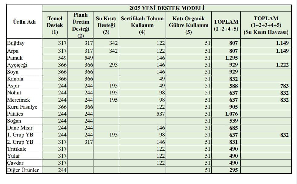Karaman İl Tarım ve Orman Müdürlüğü’nden yapılan açıklamada, “2024/2025 bitkisel üretim destekleri 4️ ana kalemden oluşmaktadır. Temel destek ve Planlama destek rakamı ve katsayılar mazot ve gübre girdi fiyatları baz alınarak hesaplanmıştır.