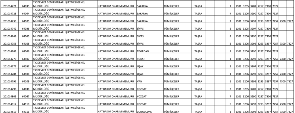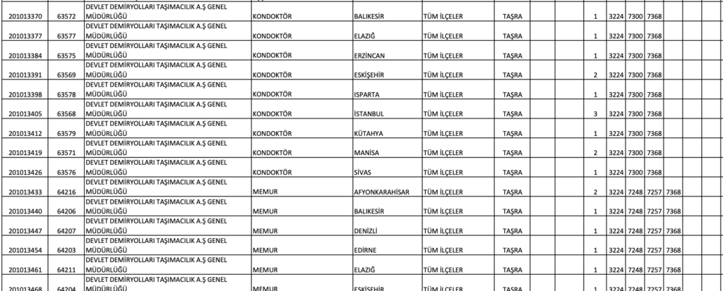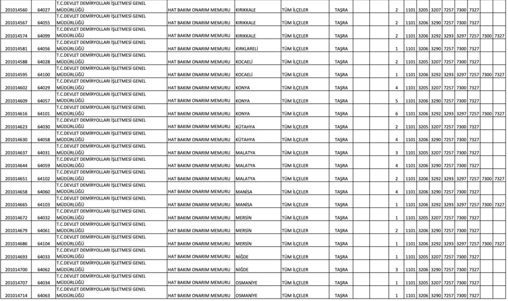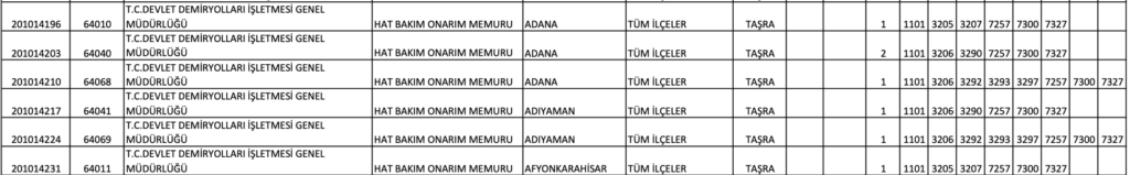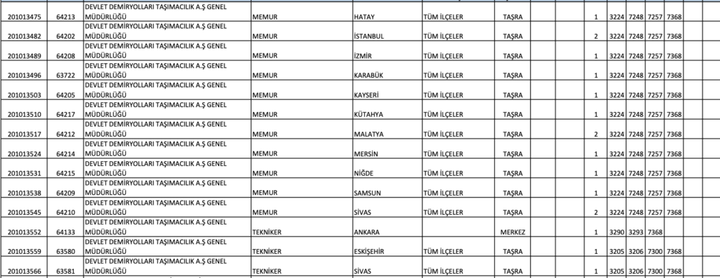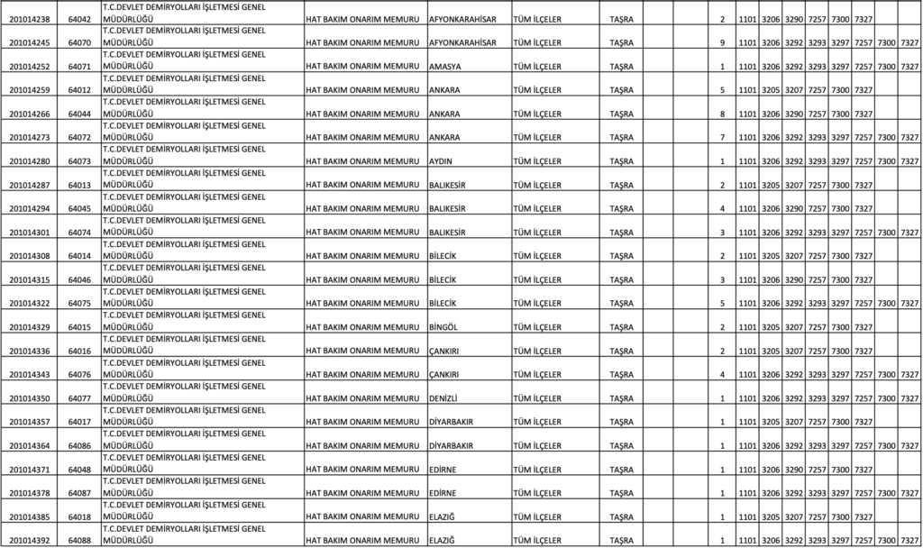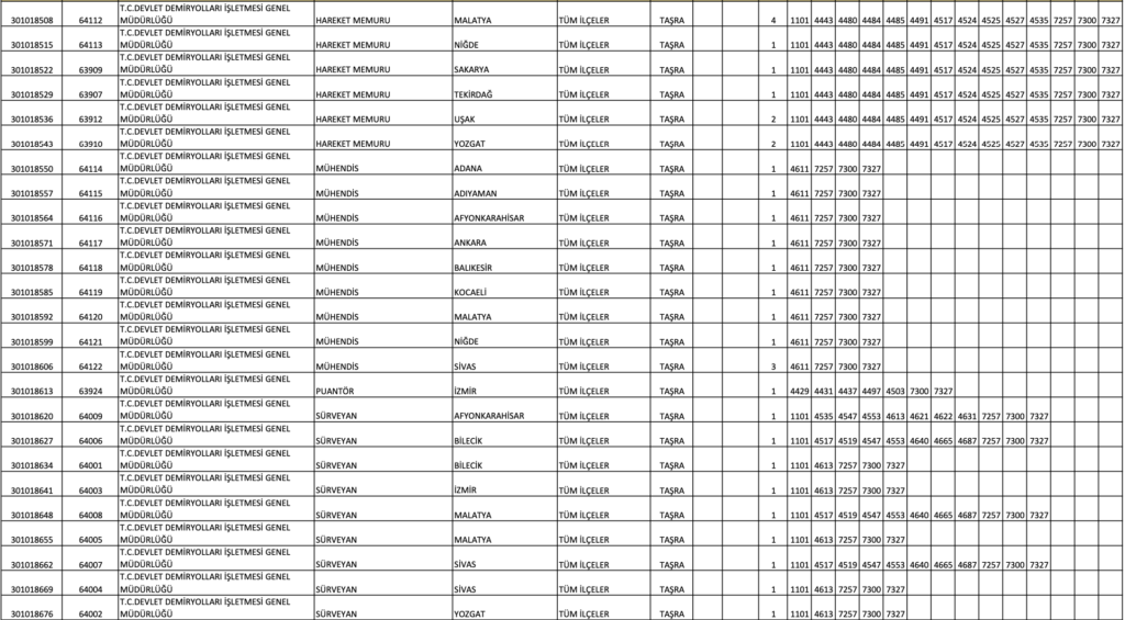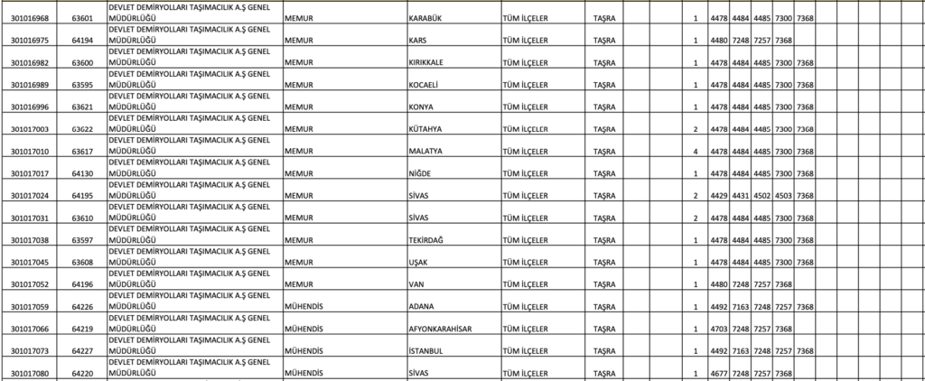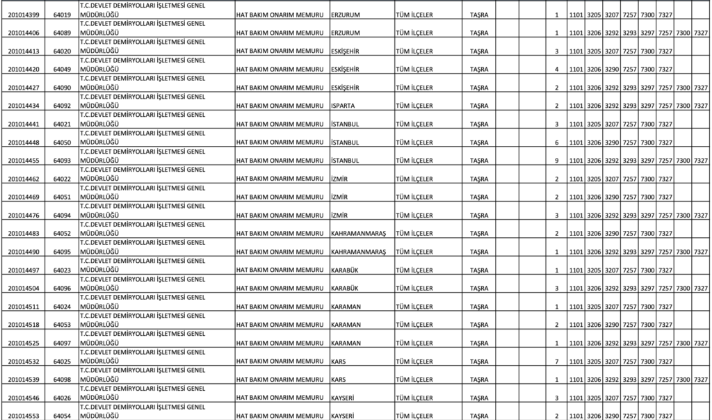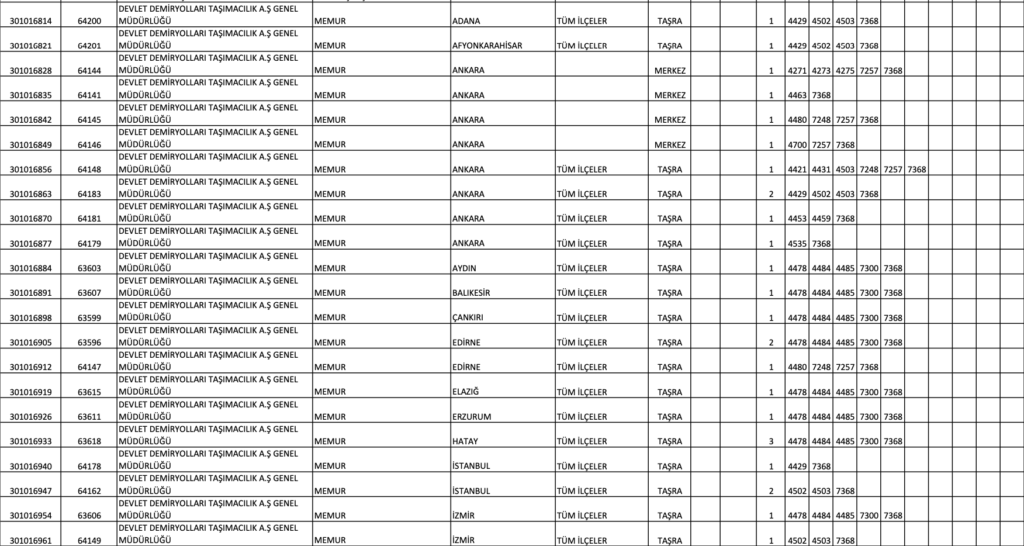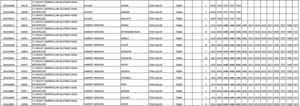 TCDD MEMUR ALIM KONTENJAN DAĞILIM