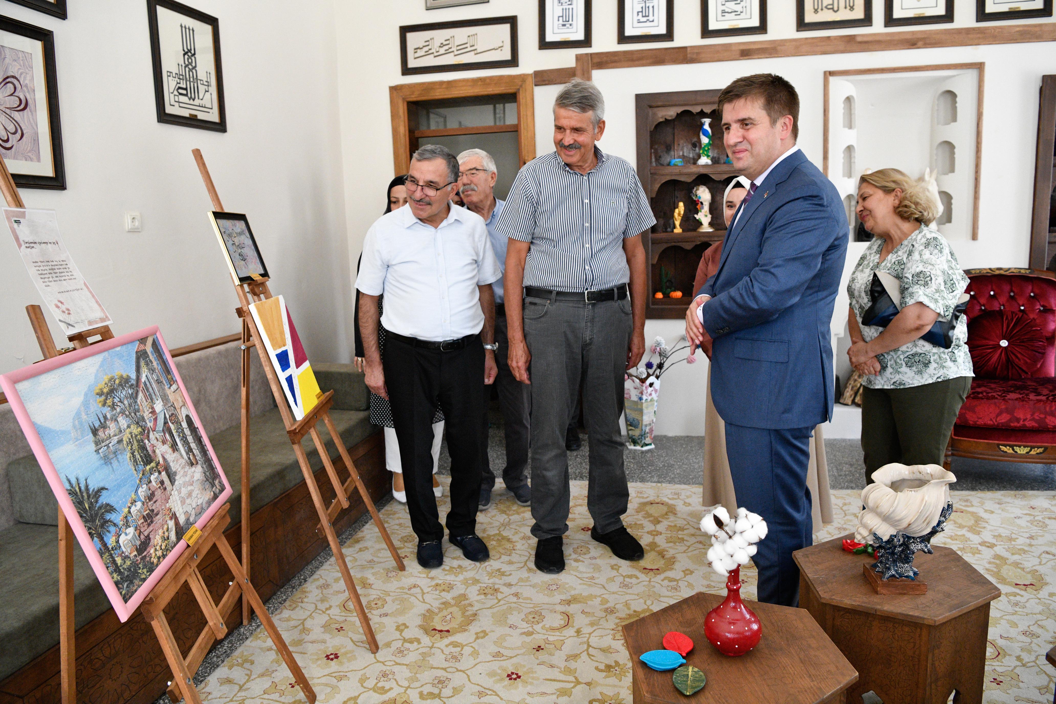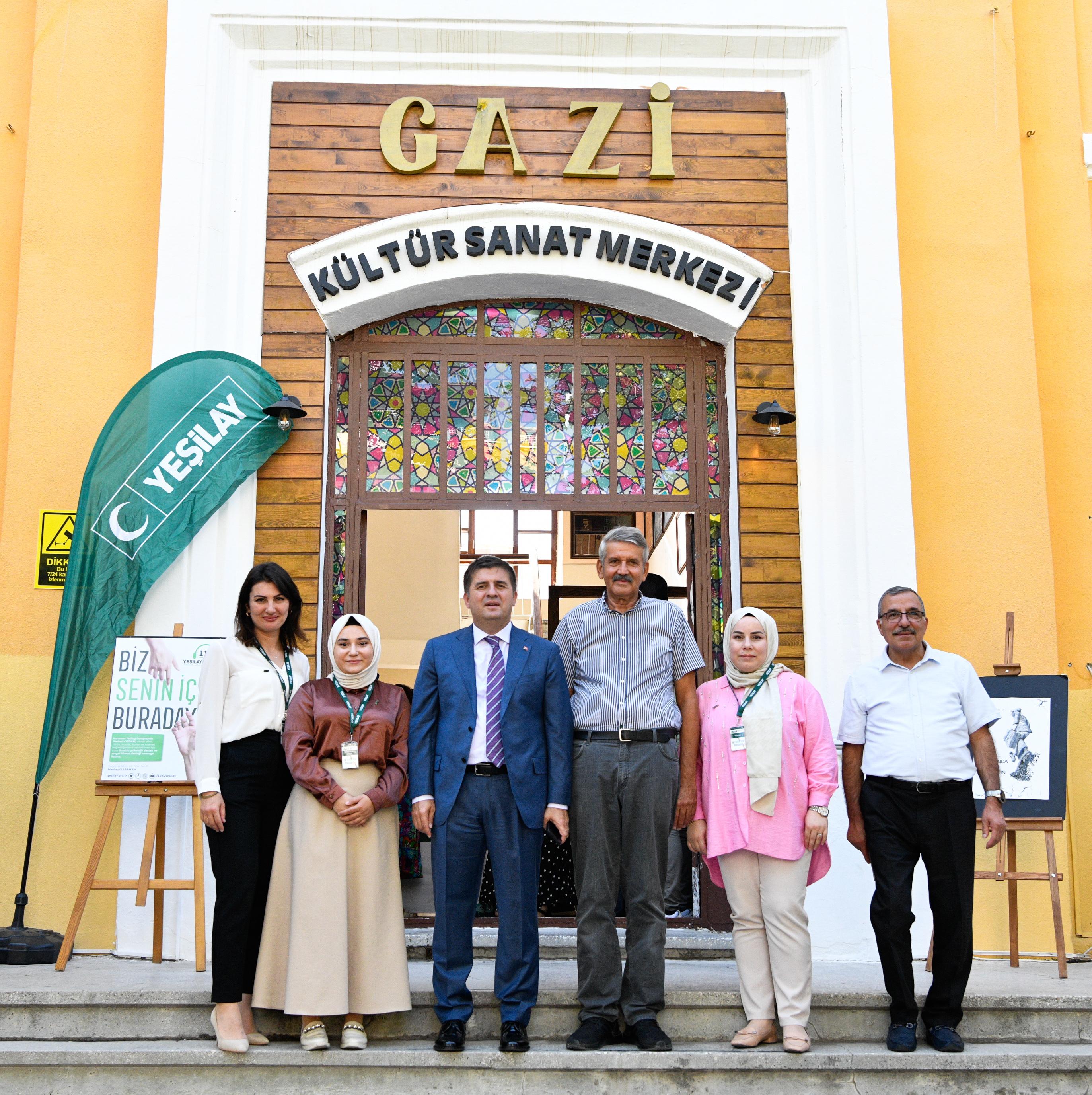 Gazi Kültür Sanat Merkezi’nde açılan sergide incelemelerde bulunan Valimiz H. Engin Sarıibrahim, sergi hakkında Yeşilay Derneği Başkanı İhsan Duru’dan bilgiler aldı.