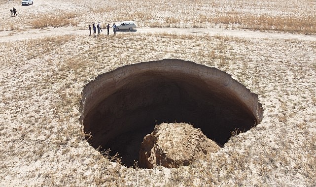 Konya'nın Karapınar ilçesinde, yaklaşık 40 metre çapında, 70 metre derinliğinde obruk oluştu.