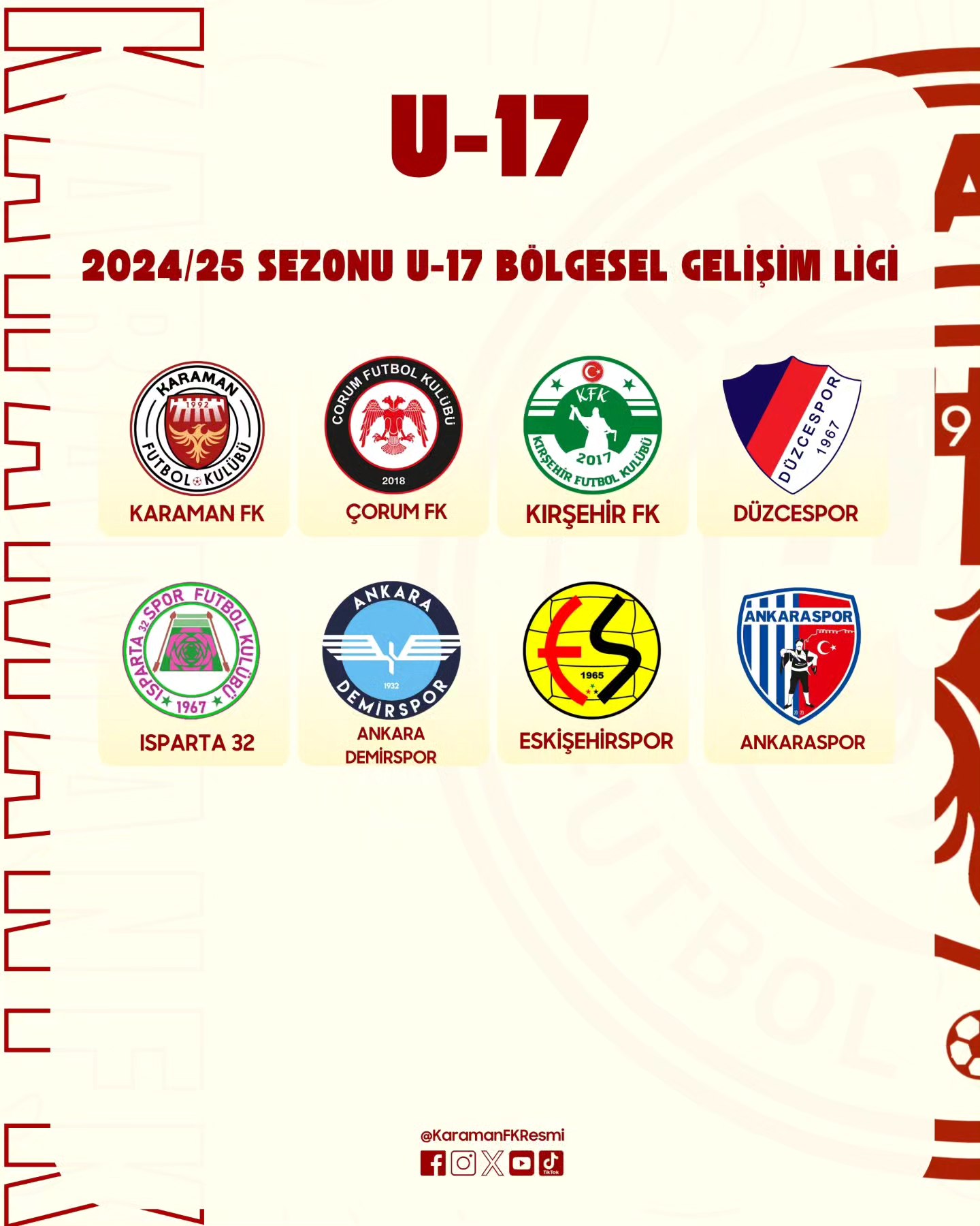 Karaman FK Akademi takımının U-17 Bölgesel Gelişim Ligindeki rakipleri ise belli oldu.