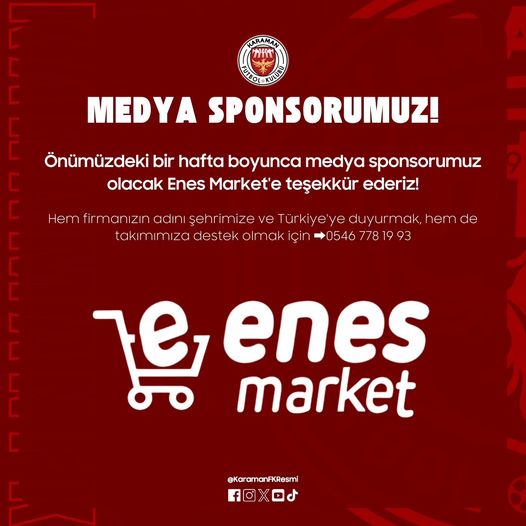 Karaman Futbol Kulübü'nden yapılan açıklamada: " MEDYA SPONSORUMUZ! @enesmarket.70
