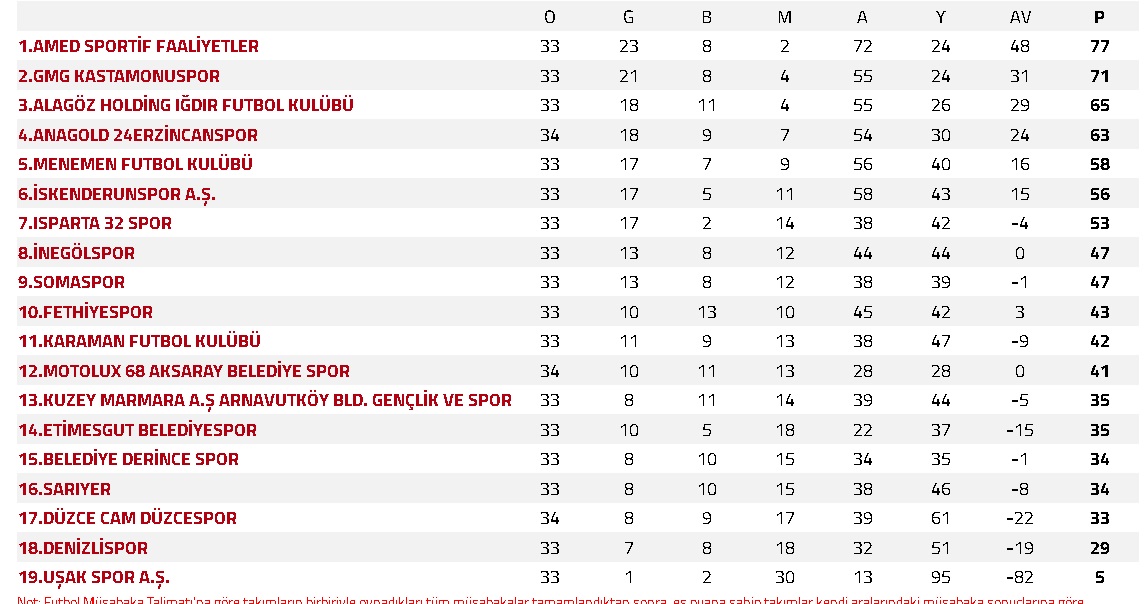 Haftanın en önemli maçlarından biri olan Amedsapor Kastamonuspor müsabakasını ise Amedspor deplasmanda karşılaştığı rakibi Kastamonuspor'u 1-0 mağlup ederek kendisine en yakın rakibi Kastamonuspor ile arasındaki puan farkını 6'ya çıkartarak şampiyonluğa göz kırptı.