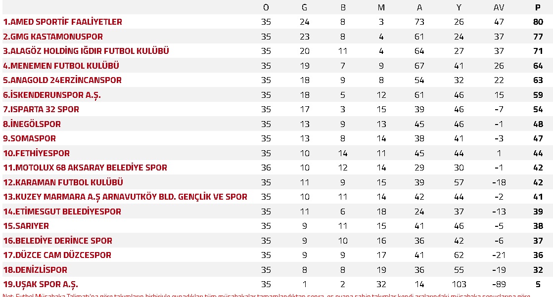 Grupta İskenderunspor haftayı puansız kapatmasına rağmen Alagöz Holding Iğdır FK, Anagold 24Erzincanspor ve Menemen FK'nin ardından Play-Off vizesi alan 4. takım oldu.