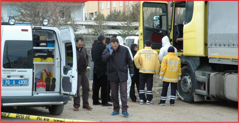 Edinilen bilgiye göre, Organize Sanayi Bölgesi’nde bulunan bir fabrikaya gece yarısı yük getirdiği öğrenilen Mehmet Çiçek'e (59) yükü boşaltabilmesi için sabahı beklemesi gerektiği söylendi. Çiçek, bunun üzerine 33 R 8786 plakalı TIR’ını Organize Sanayi Bölgesi’nde bulunan araç parkına park etti. Gün ağardığında görevliler yükü boşaltması için uyandırmaya leri TIR’da Çiçek’i bir türlü uyandıramadı. Bunun üzerine durum hemen sağlık ekibi ve polise bildirildi. Olay yerine sağlık ekibinin yaptığı incelemede Çiçek’in öldüğü tespit edilirken, TIR’dan bir köpek çıktı. Polis TIR çevresinde güvenlik tedbiri aldı. Cumhuriyet savcısının olay yerinde yaptığı incelemenin ardından Çiçek’in cesedi, kesin ölüm sebebinin belirlenebilmesi için Karaman Devlet Hastanesi morguna rıldı.